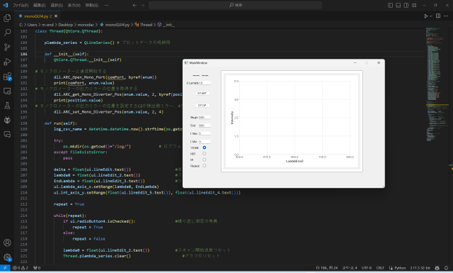 PythonによるGUI付ソフトウエアの開発(分光器等の制御プログラムの例)