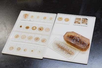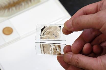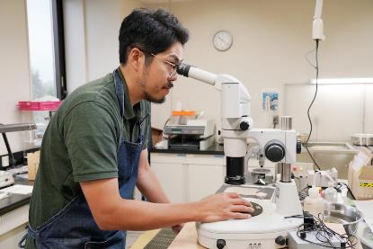 研究や教育に必要な岩石試料、生物試料、金属試料などの光学的性質を知るために、試料の処理・薄片作製業務を行います。
